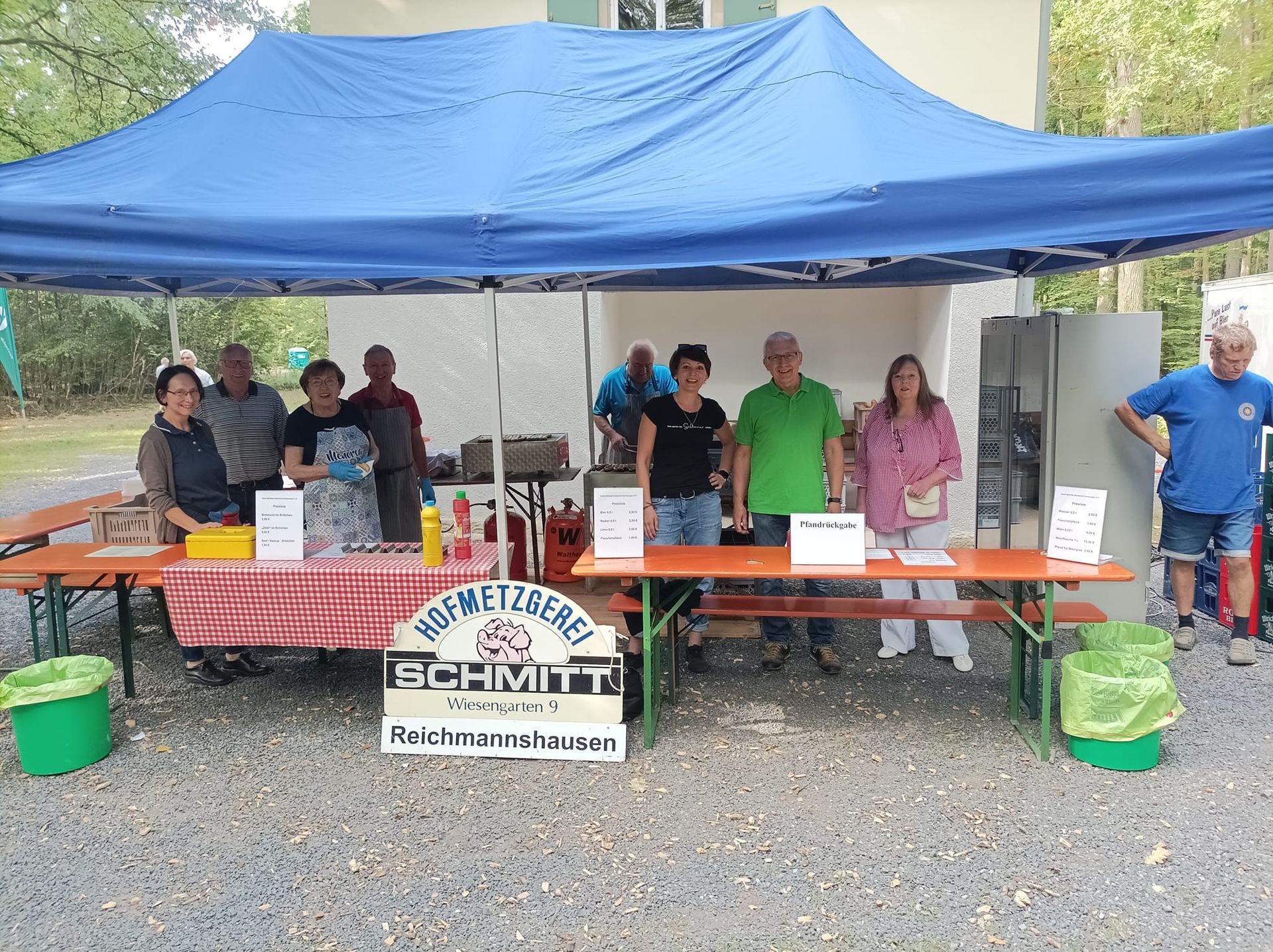 Die Blaskapelle Mainberg spielte zünftig auf und unser Verein übernahm die Bewirtung: Bratwürste vom Gasgrill, Kaltgetränke und Kuchen.