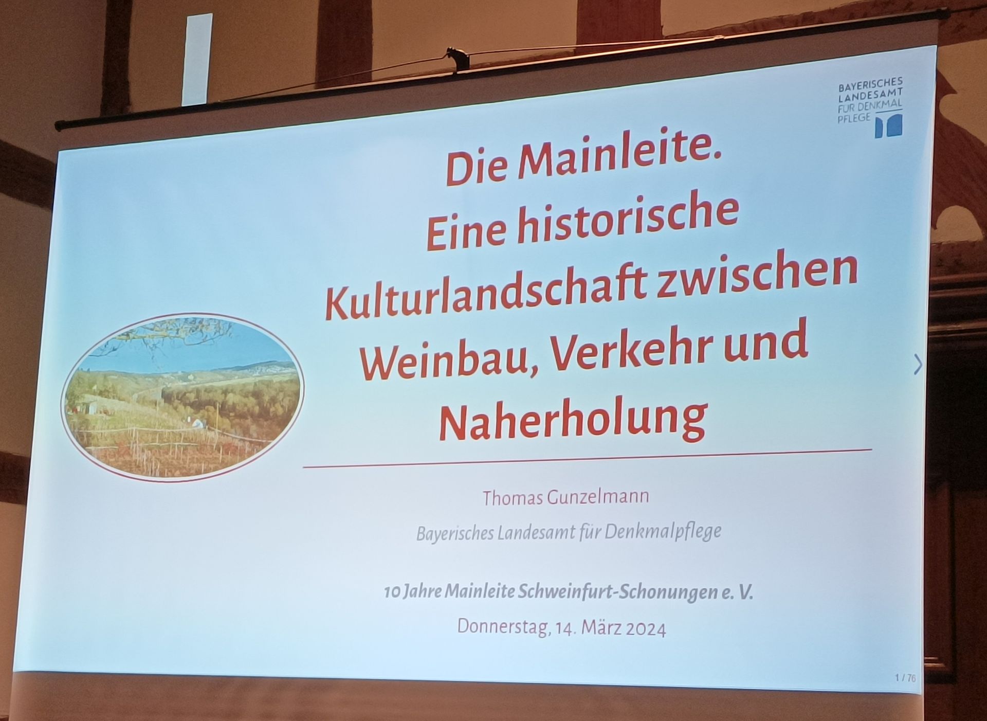 Am 13. August 2014 wurde der Verein Mainleite Schonungen-Schweinfurt e. V. ins Leben gerufen. Seine Gründung basierte auf der klaren Ausrichtung, das Naherho-lungsgebiet nachhaltig zu stärken, die Kulturlandschaft zu pflegen und den Weinbau wiederzubeleben.