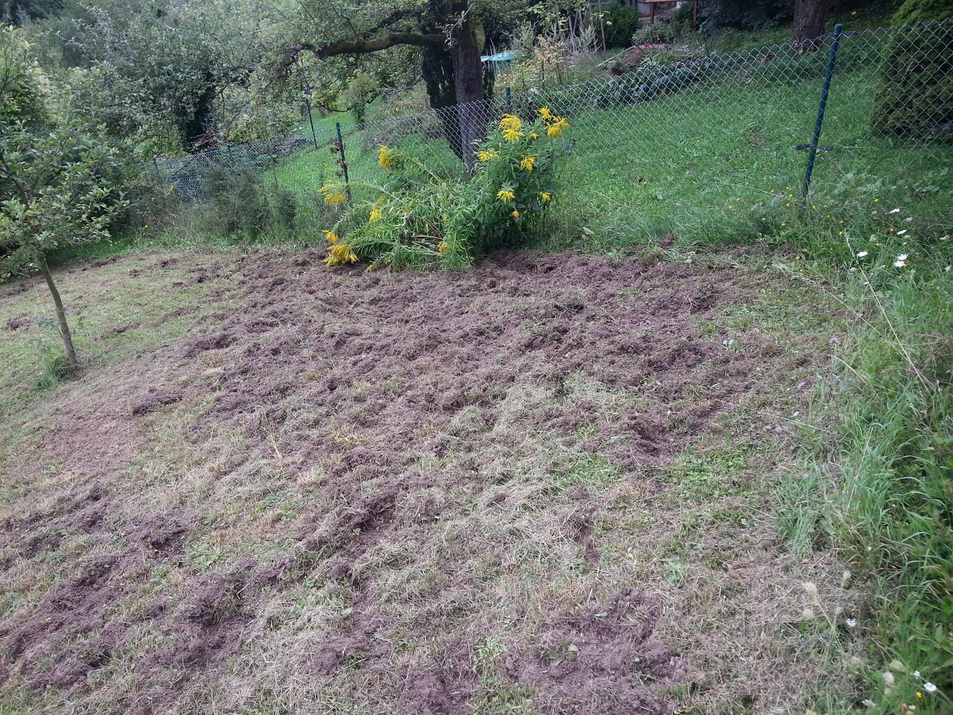 Wildschweine nehmen auf der Mainleite leider überhand. Die Verbuschung, die noch an vielen Stellen zu finden ist und die mangelnde Absicherung durch Zäune macht es ihnen leicht, sich im Areal zu bewegen. Und dabei richten sie auch ordentlich Schaden an.